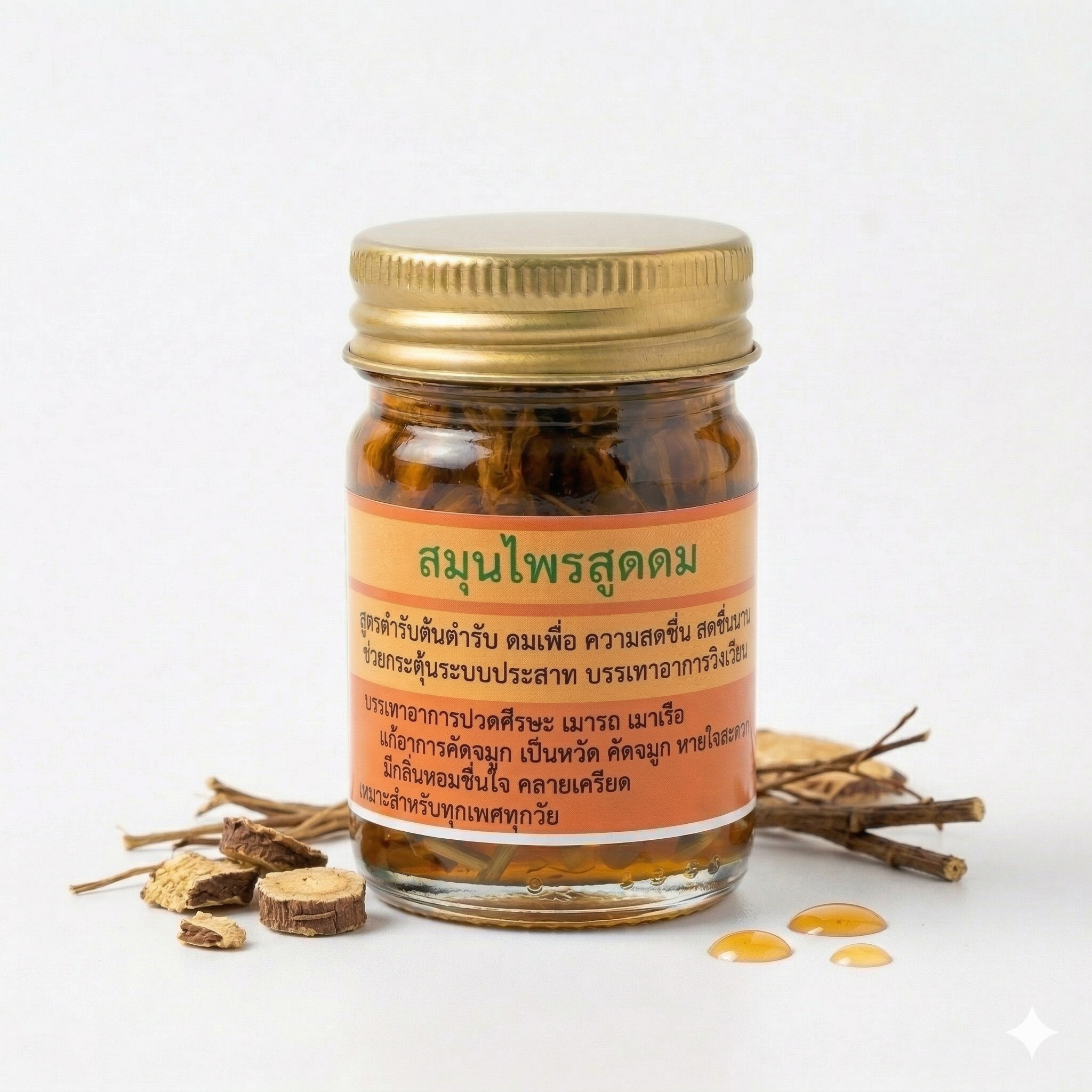 ยาดมสมุนไพรแท้ที่ผลิตจากวิสาหกิจชุมชนห้วยทรายเหนือ จังหวัดเพชรบุรี เน้นความสดชื่นจากธรรมชาติ ปลอดภัย ไร้สารเคมีรุนแรง