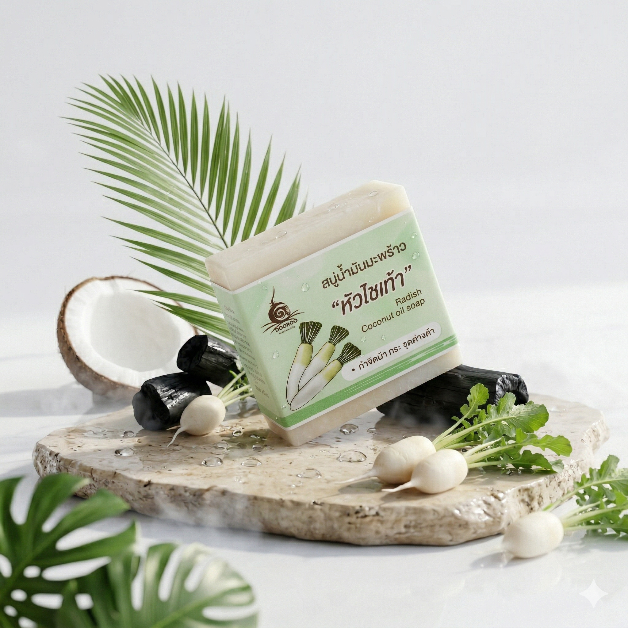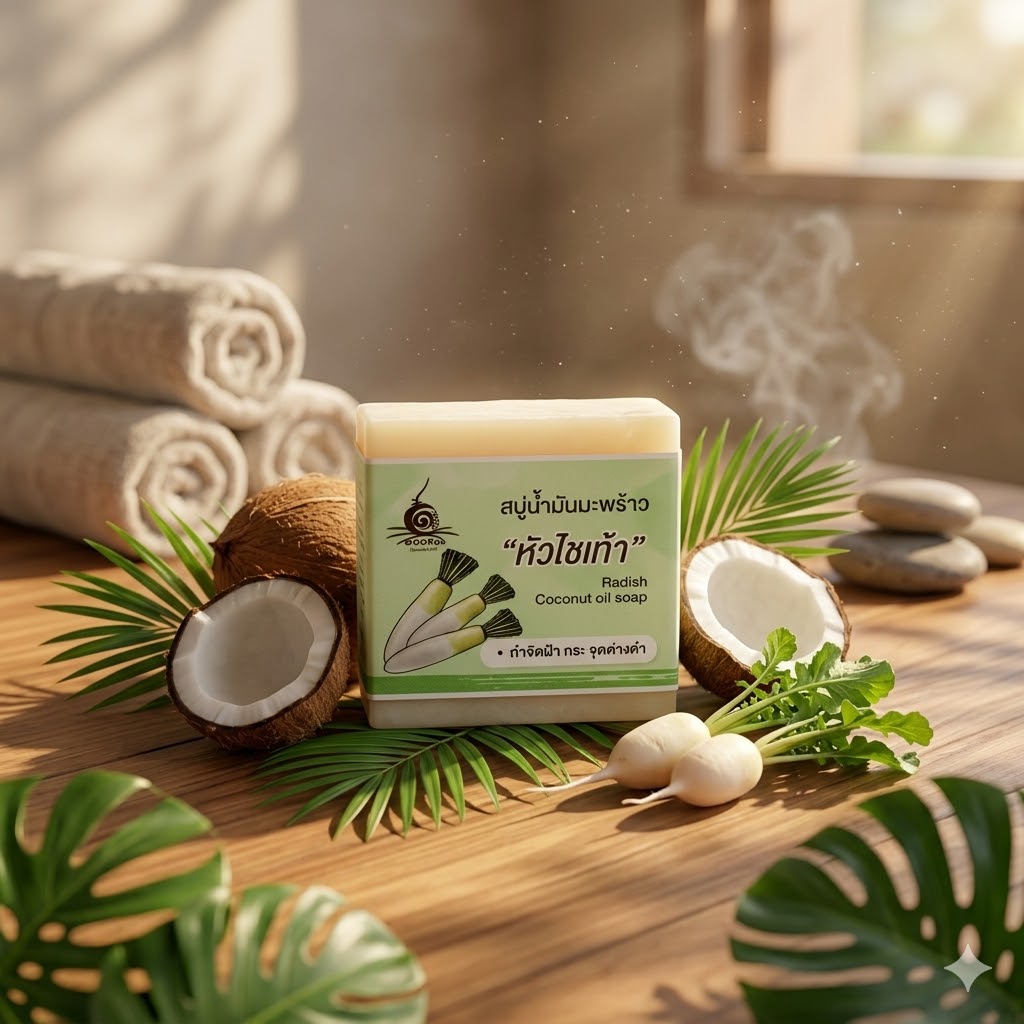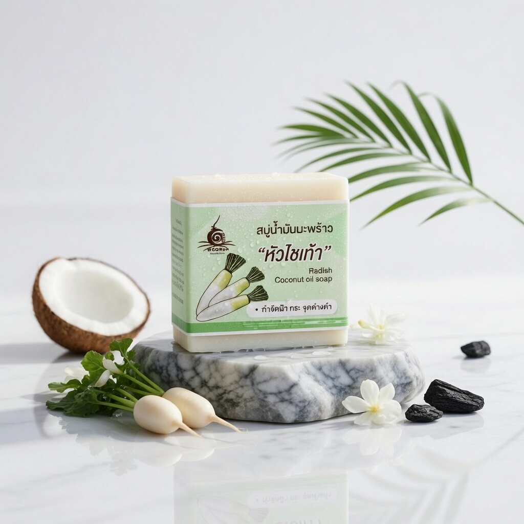 🌿 ส่วนประกอบสำคัญของสบู่น้ำมันมะพร้าวหัวไชเท้า | OTOP 100พันมะพร้าว
