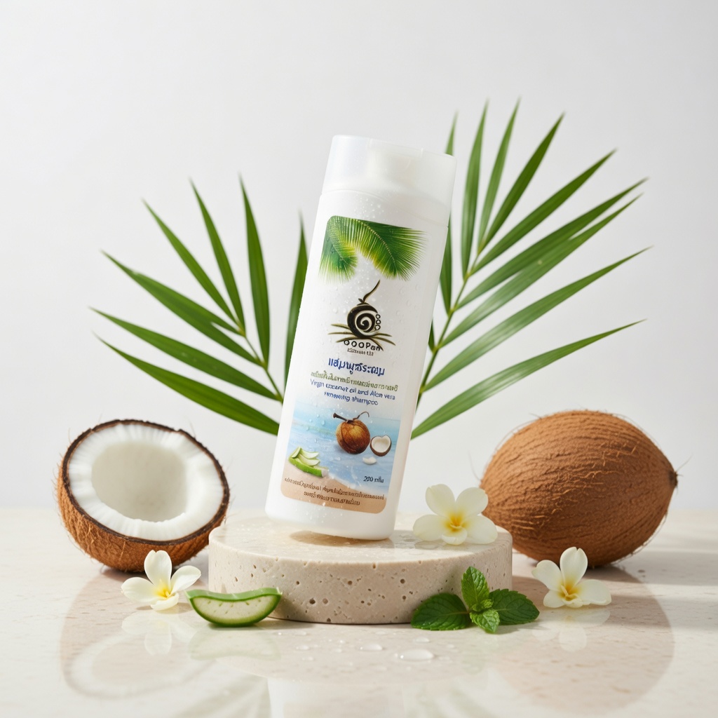 🧪 ส่วนประกอบสำคัญของแชมพูสระผมน้ำมันมะพร้าว | OTOP 100พันมะพร้าว